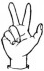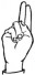 На ћирилици написано ПАУН КОРТИ састоји се из 9 слова [?]. Исписано ћириличном једноручном азбуком за глувонеме: